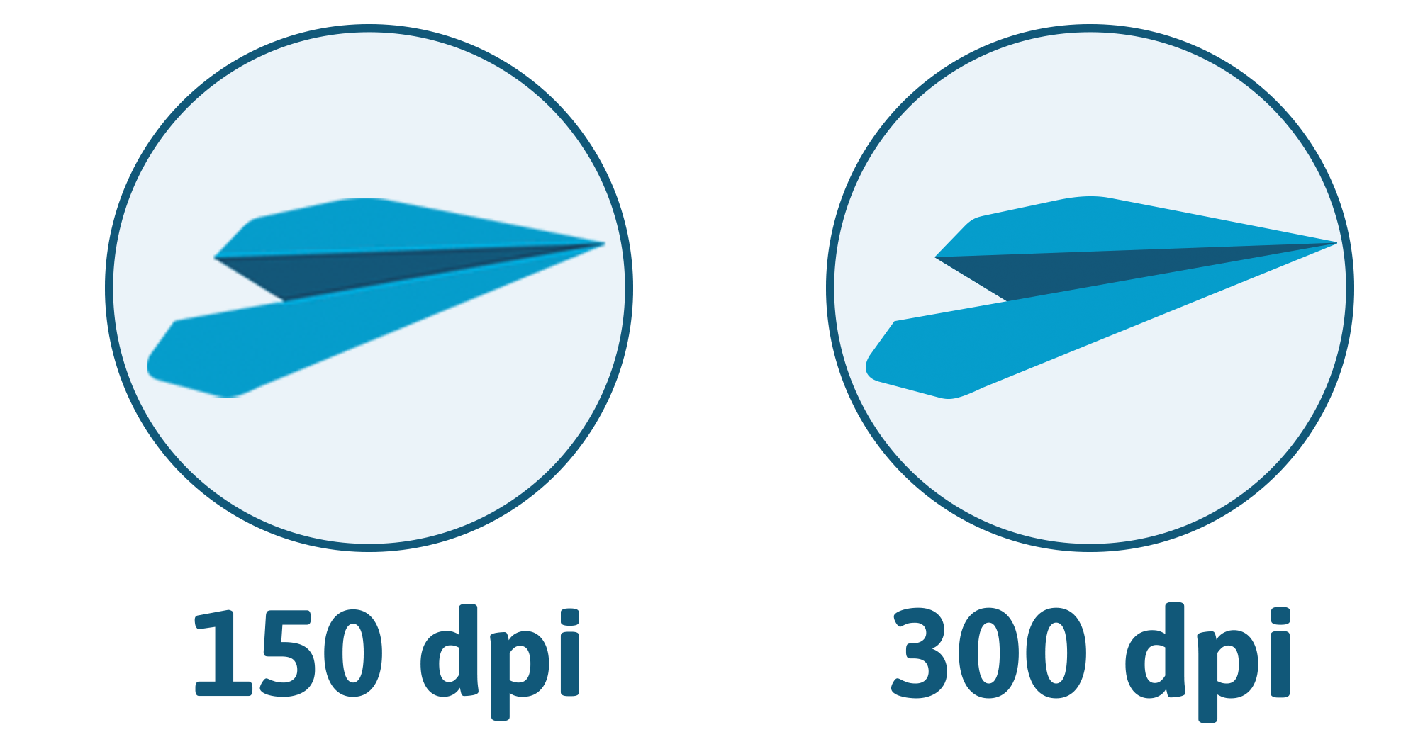 Hinweis verdeutlich an einem Bild: Dateien mit weniger als 300 dpi verursachen mit abnehmender dpi-Zahl deutliche Qualitätsverluste. Ein nachträgliches Erhöhen der dpi-Zahl/der Auflösung verbessert nicht die Qualität.